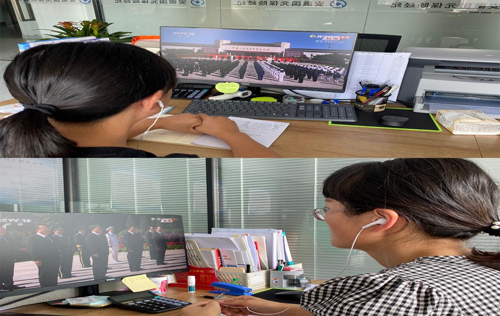 2020年9月3日上午,國元保險經(jīng)紀(jì)黨支部組織我司干部職工觀看中國人民抗日戰(zhàn)爭暨世界反法西斯戰(zhàn)爭勝利75周年紀(jì)念日直播,銘記歷史,緬懷先烈。大家紛紛表示要不忘初心,牢記使命,努力做好新時代的建設(shè)者,為祖國繁榮富強(qiáng)努力奮斗。