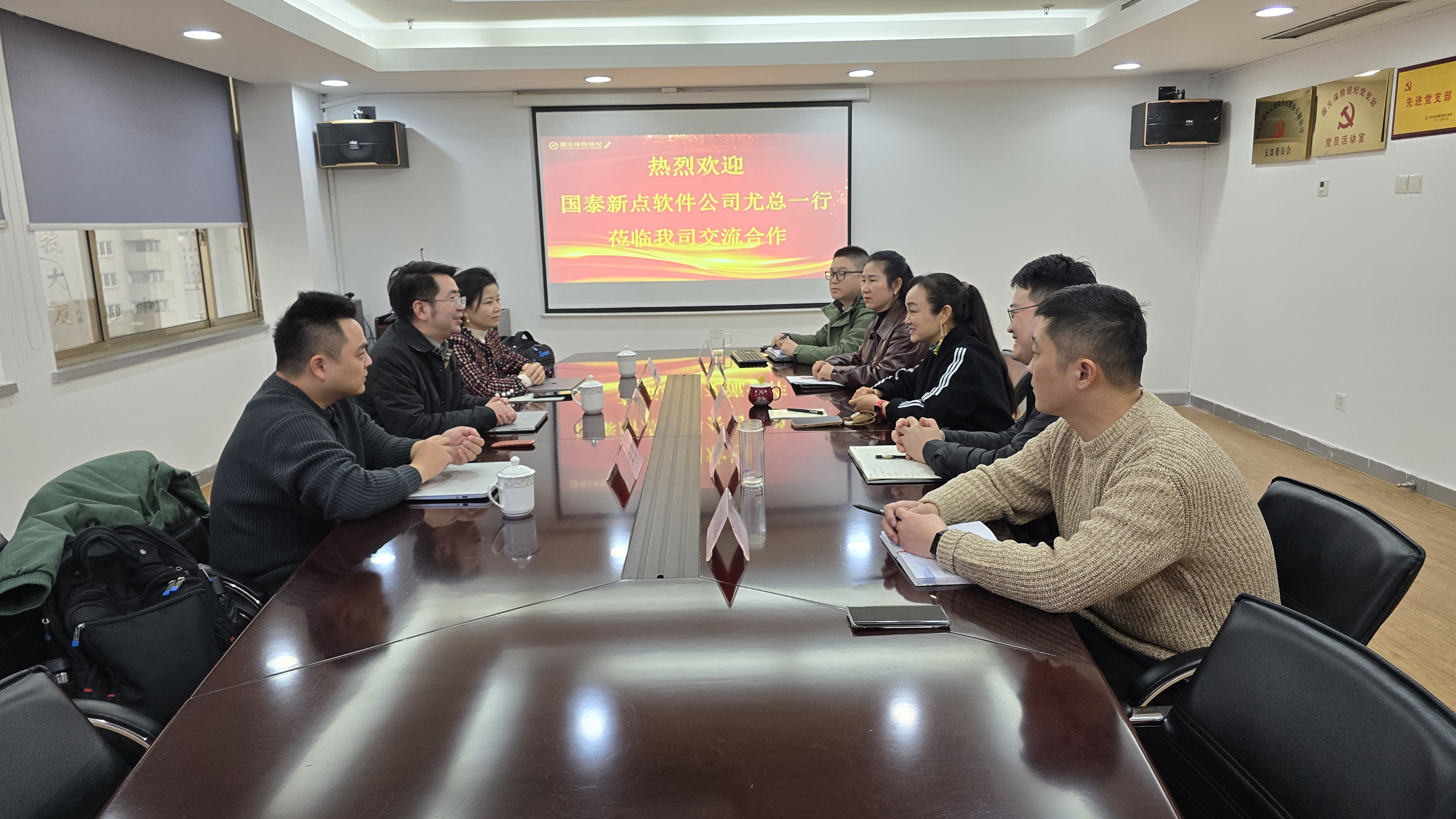 國元保險經(jīng)紀公司副總經(jīng)理戴忠燕、互聯(lián)網(wǎng)業(yè)務部總經(jīng)理葉俊生、業(yè)務管理部總經(jīng)理都茂春,國泰新點相關工作人員參會。