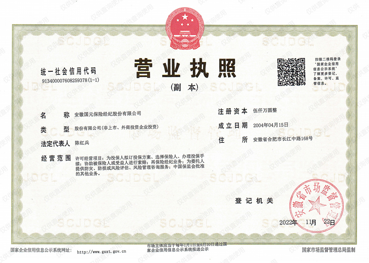 安徽國(guó)元保險(xiǎn)經(jīng)紀(jì)股份有限公司代理銷售國(guó)元農(nóng)業(yè)保險(xiǎn)股份有限公司授權(quán)的投標(biāo)保證保險(xiǎn) |